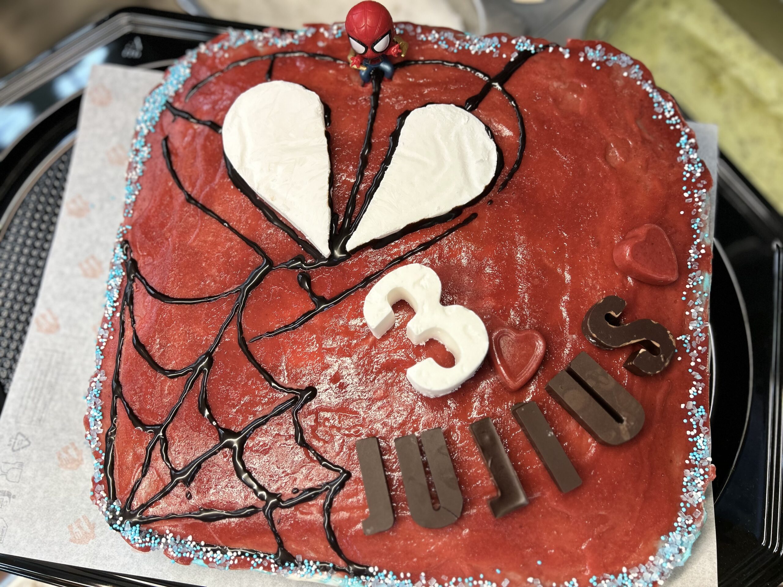 Soßen nach Wahl, Sahneverzierungen, Schoko-Herzen, Schmetterlinge, Zuckerbienen, Schokogitter, Schriftzüge, Perlen, Früchte usw. inkl. Karton
